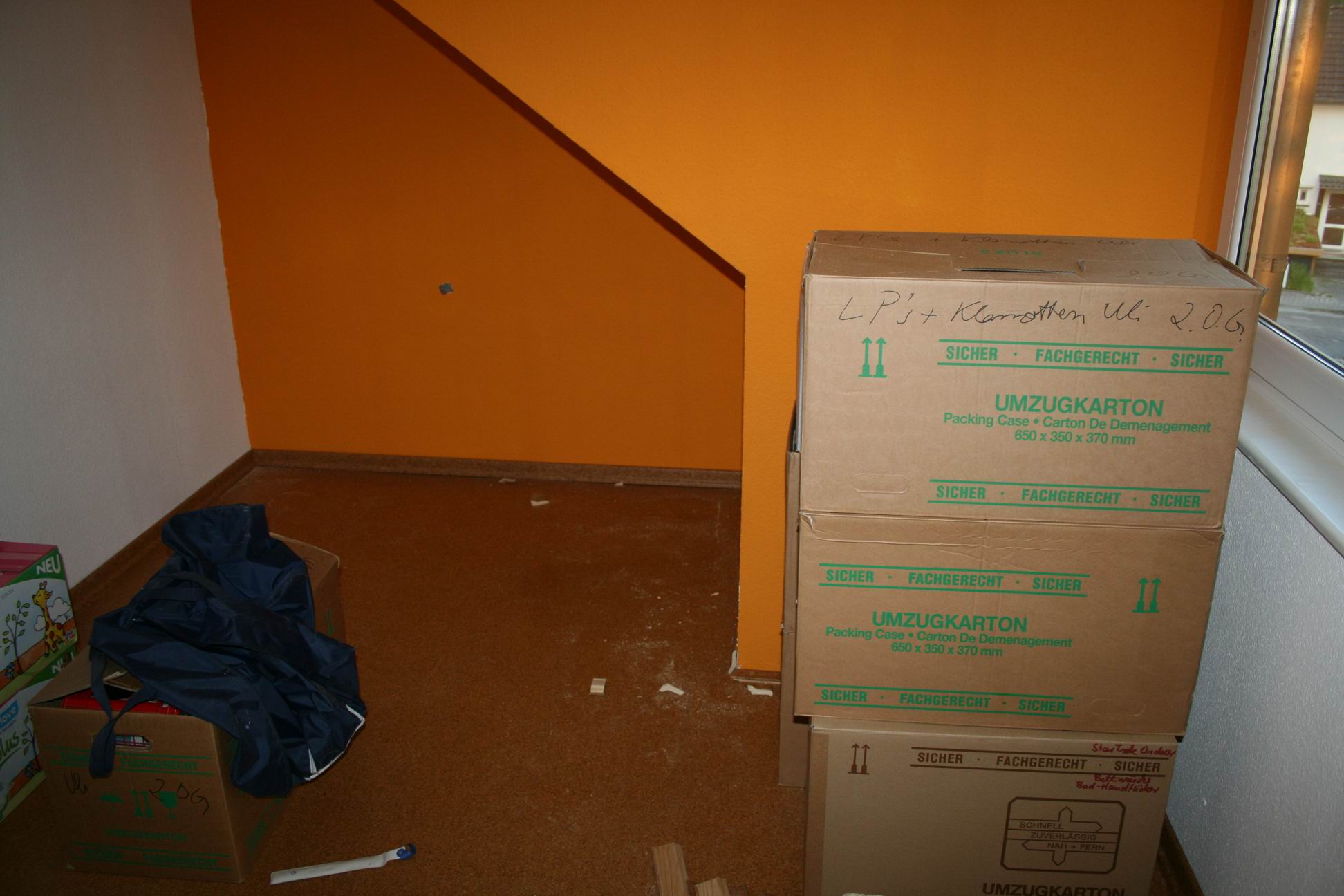 Das letzte Zimmer im Haus. Dachgeschoss nach vorne raus. Auch diese Tapete ist inzwischen gefallen.Hier soll wohl die Gästecouch und mein Computerzimmer hin.