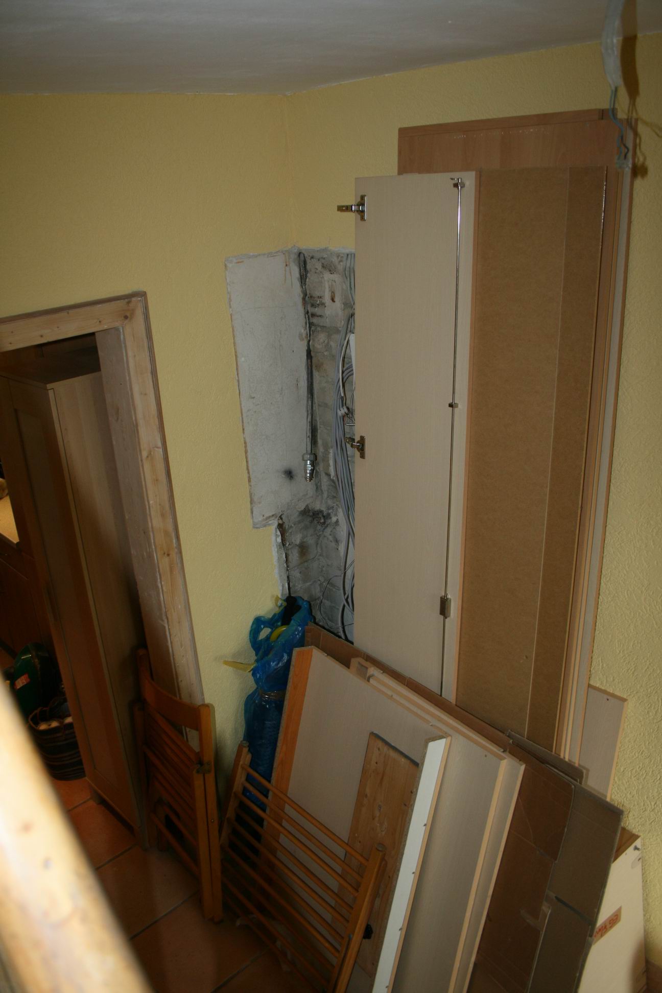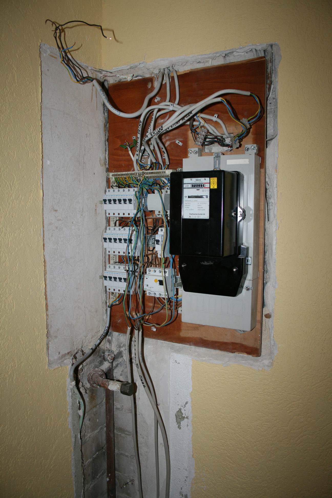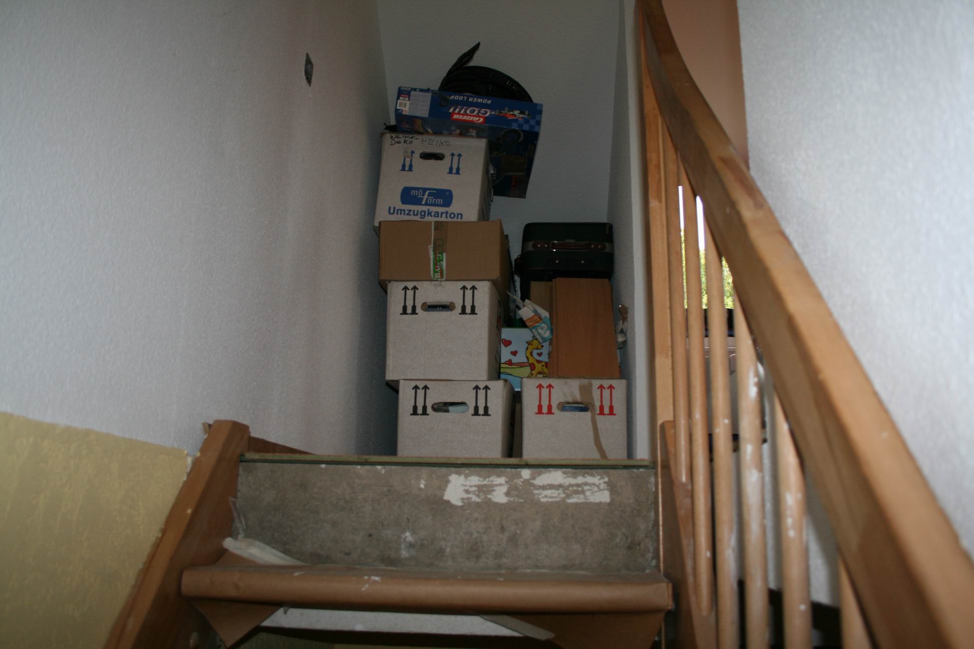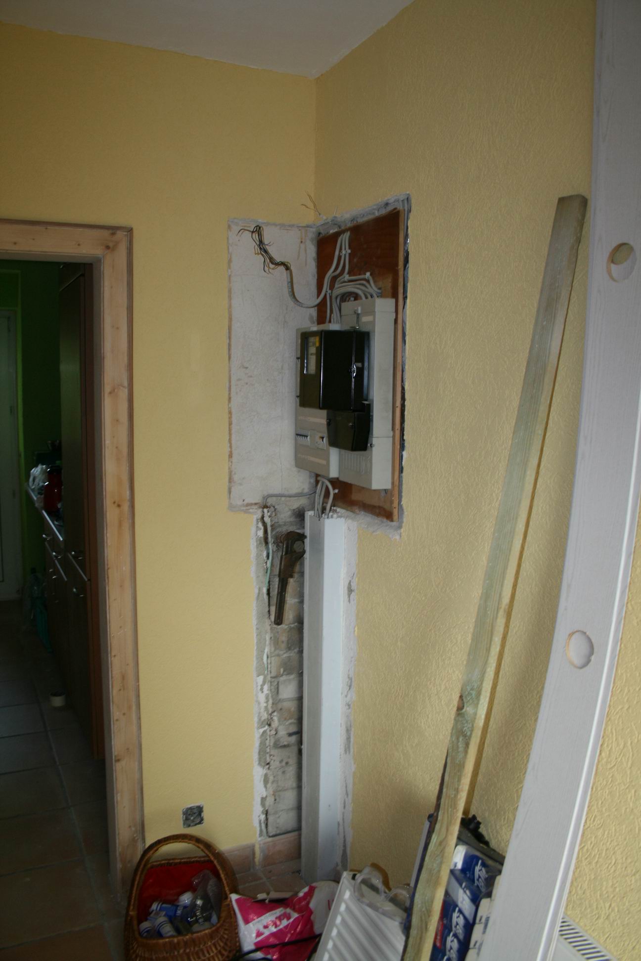 Der Sicherungskasten und die Säule darunter sind WEG!! Das Heizungsrohr, an dem der Maulschlüssel hängt, verschwindet auch noch.- 6. Juni 2007