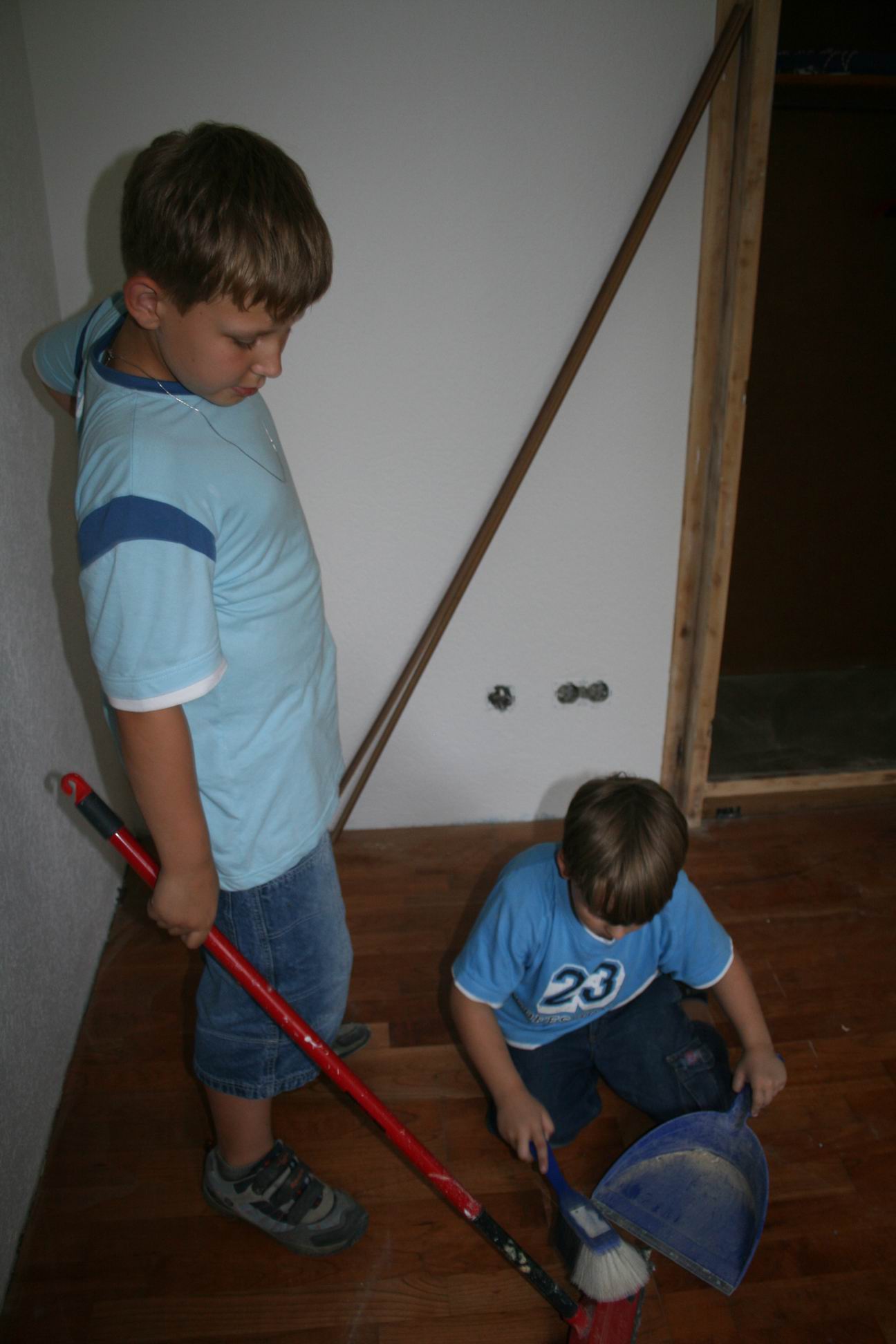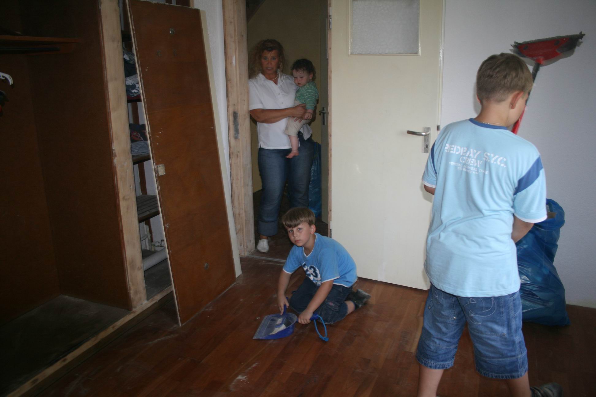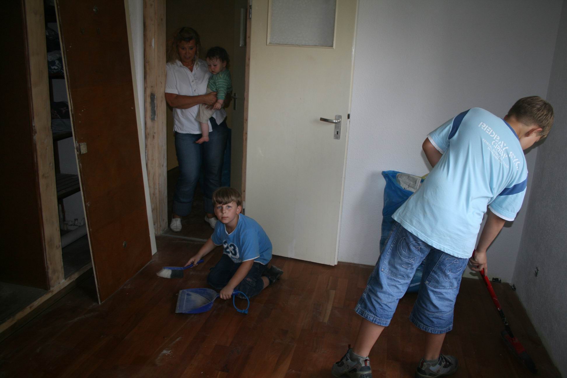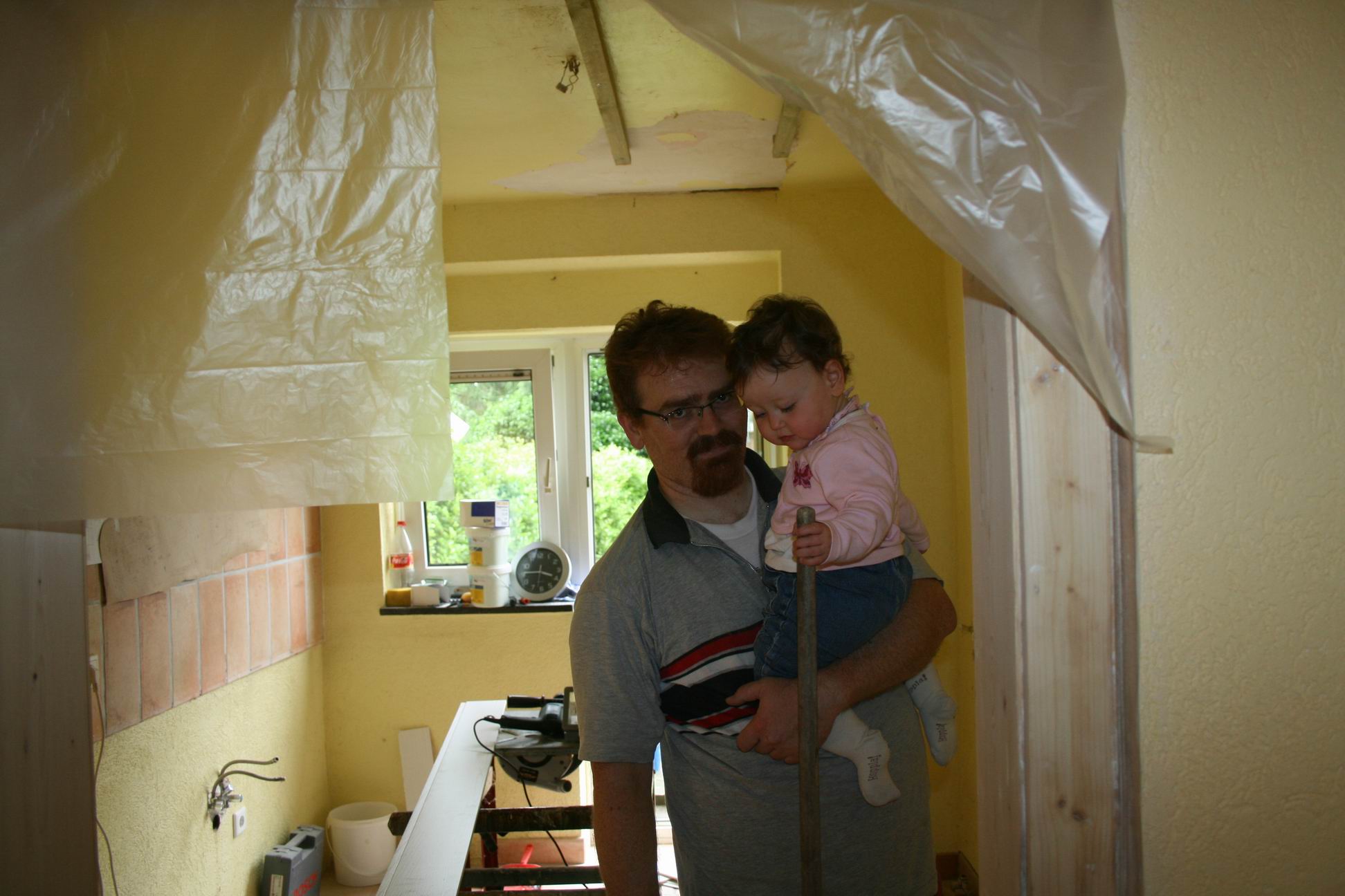 Miethkes waren auch da. Andreas ist oben Bodenleisten am setzen am tun am sein. Moni passt auf unsere kleine Maus auf und die Kiddies putzen, dank an alle - 12. Juni 2007