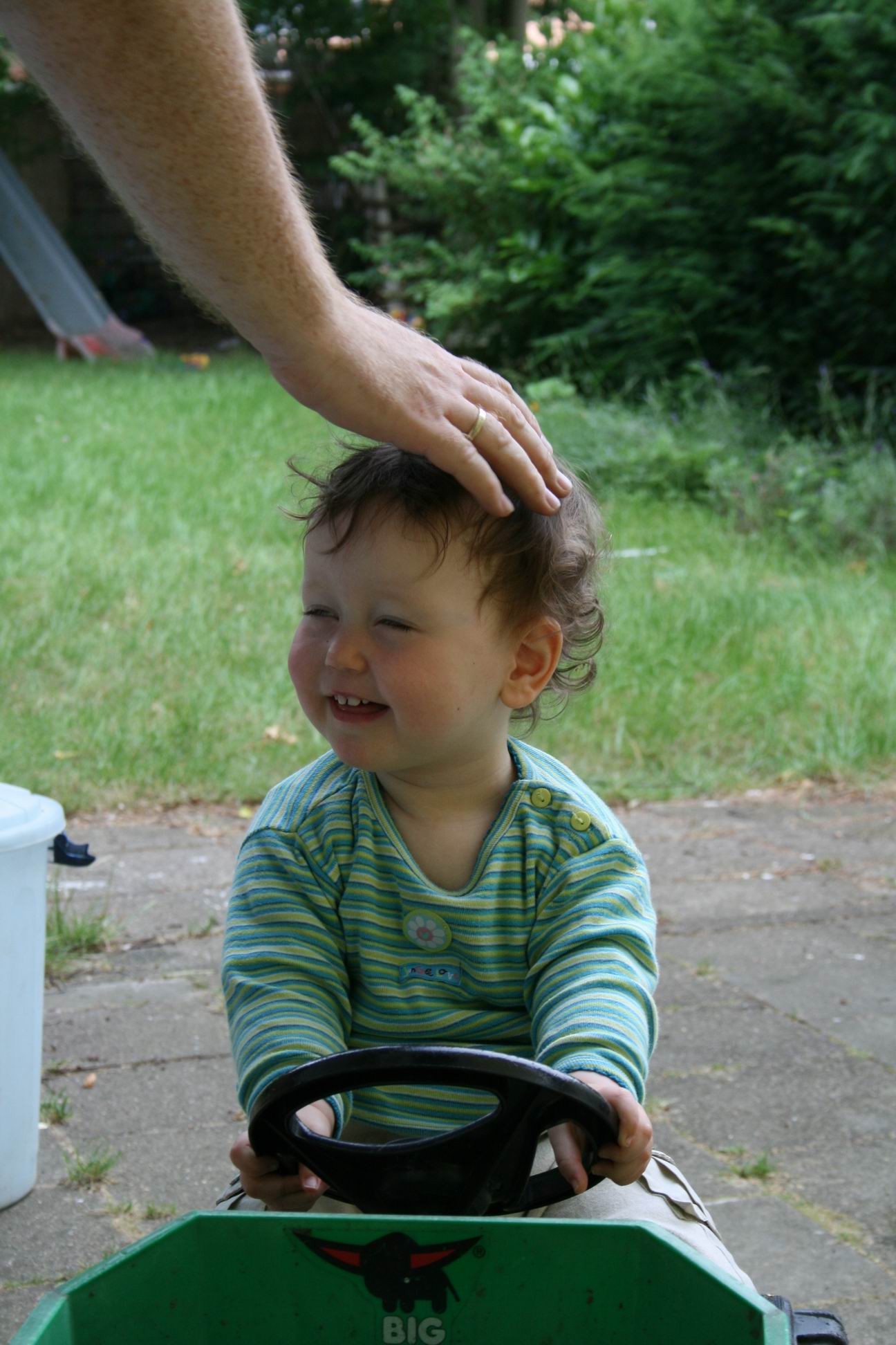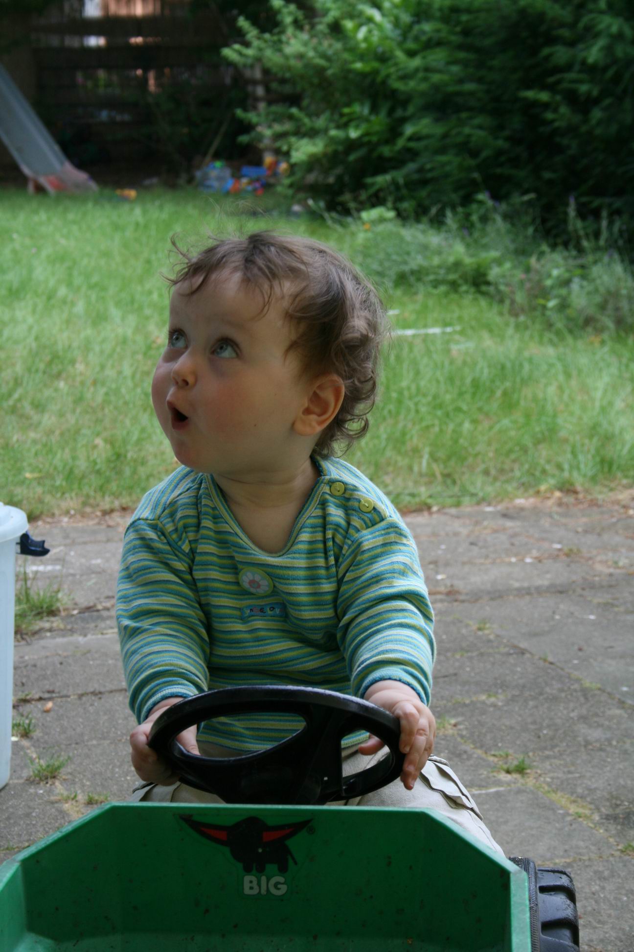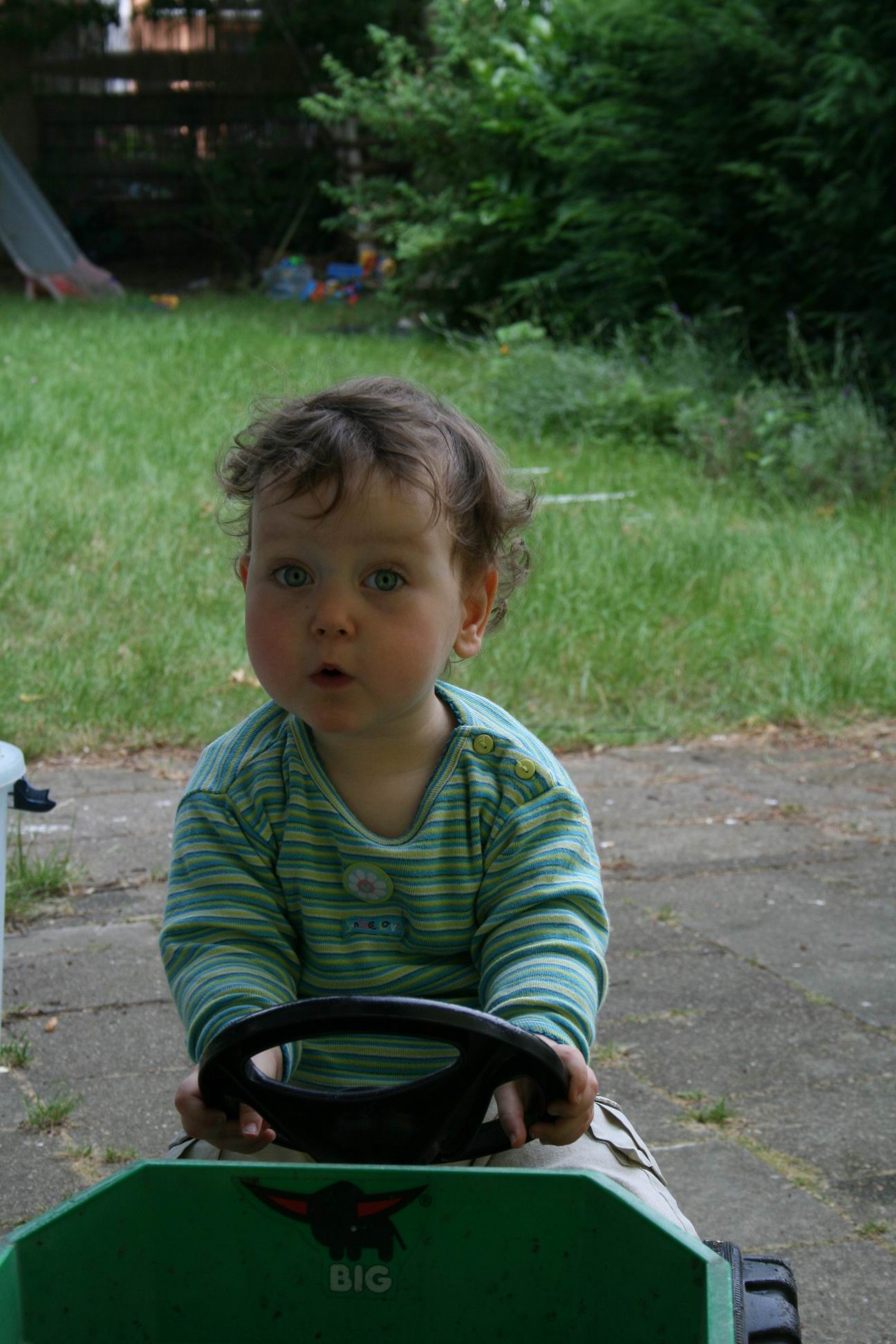 Mein Kind fährt gerne auf dem grünen Trecker. Sie sitzt zwar nur da, und ruckelt etwas am Lenkrad, aber hauptsache sie hat Spaß!! - 12. Juni 2007