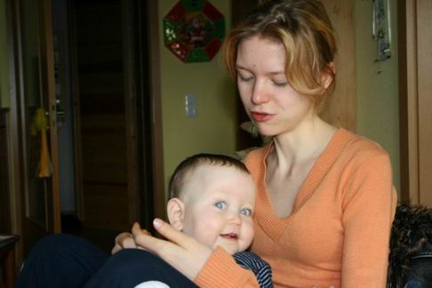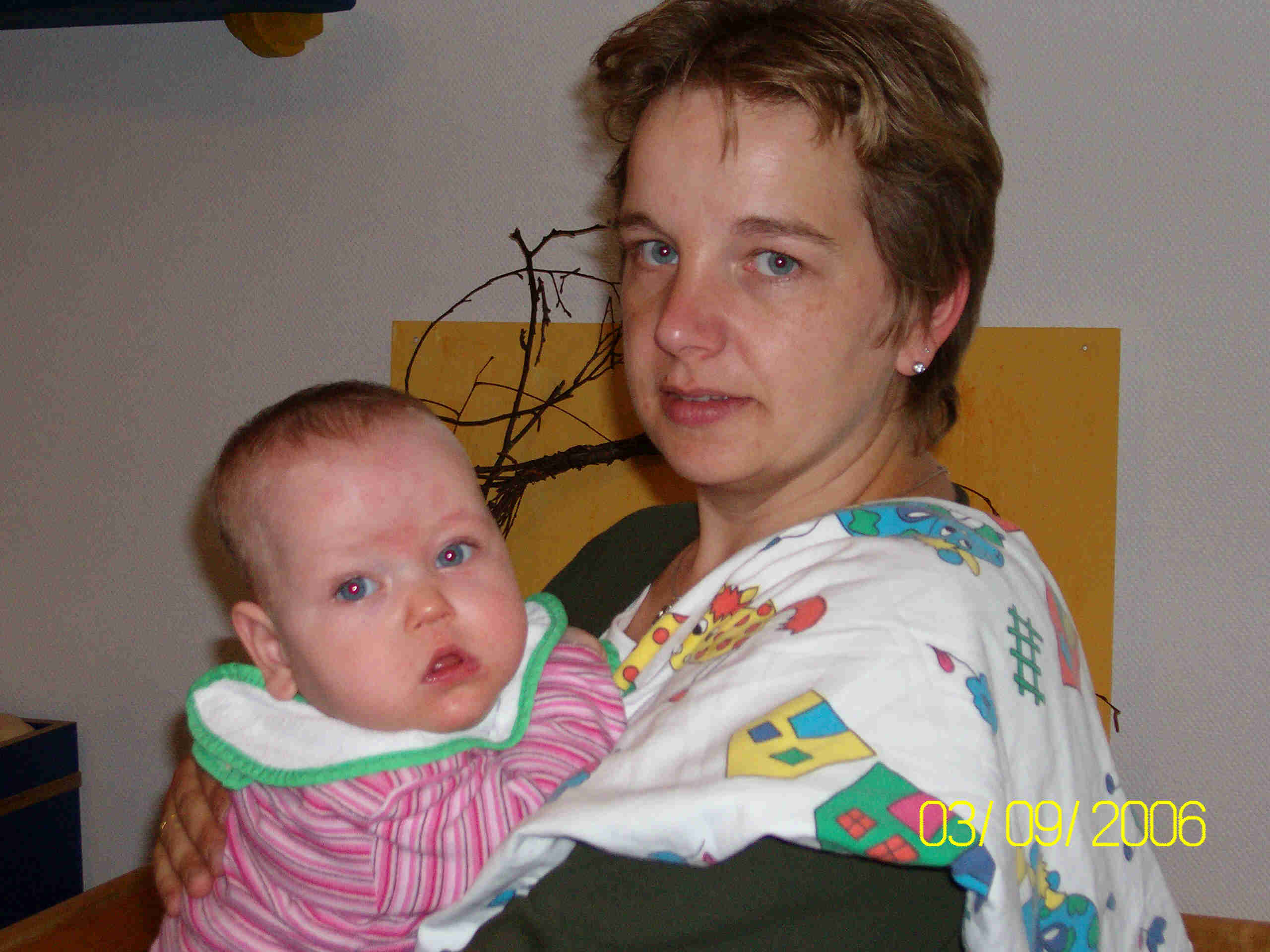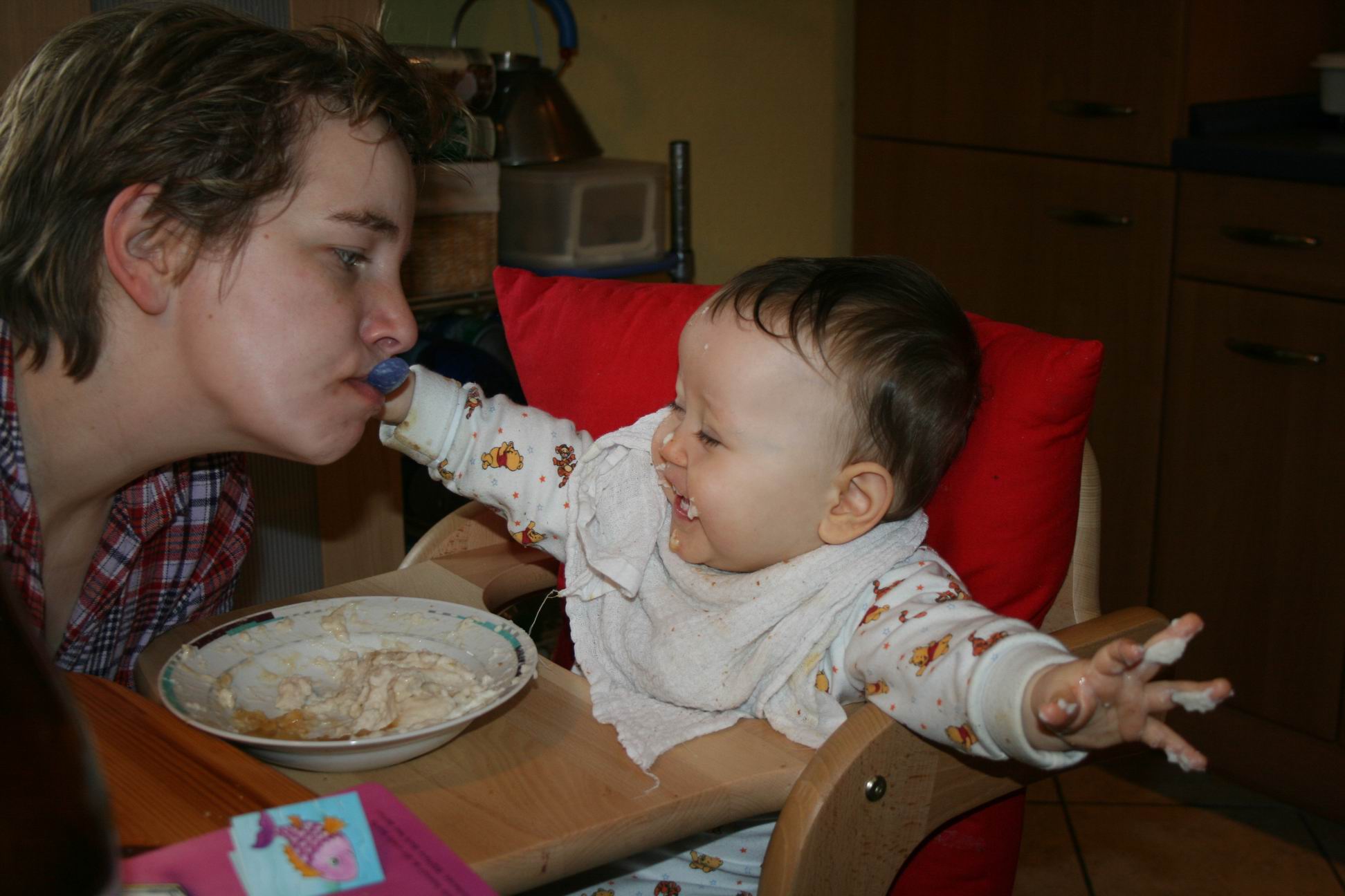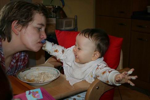 Janine, selber in der 15. Woche, übt schon mal das füttern, und den Löffel, den lass ich auch nicht aus den Augen!!