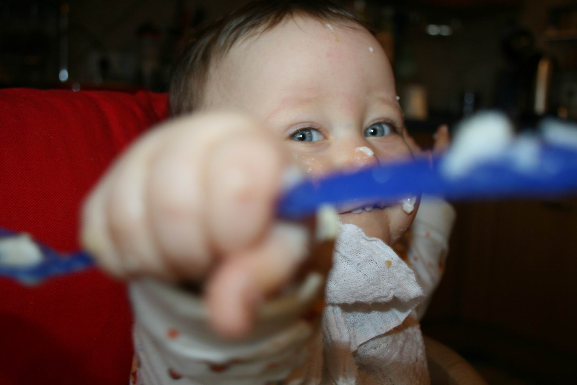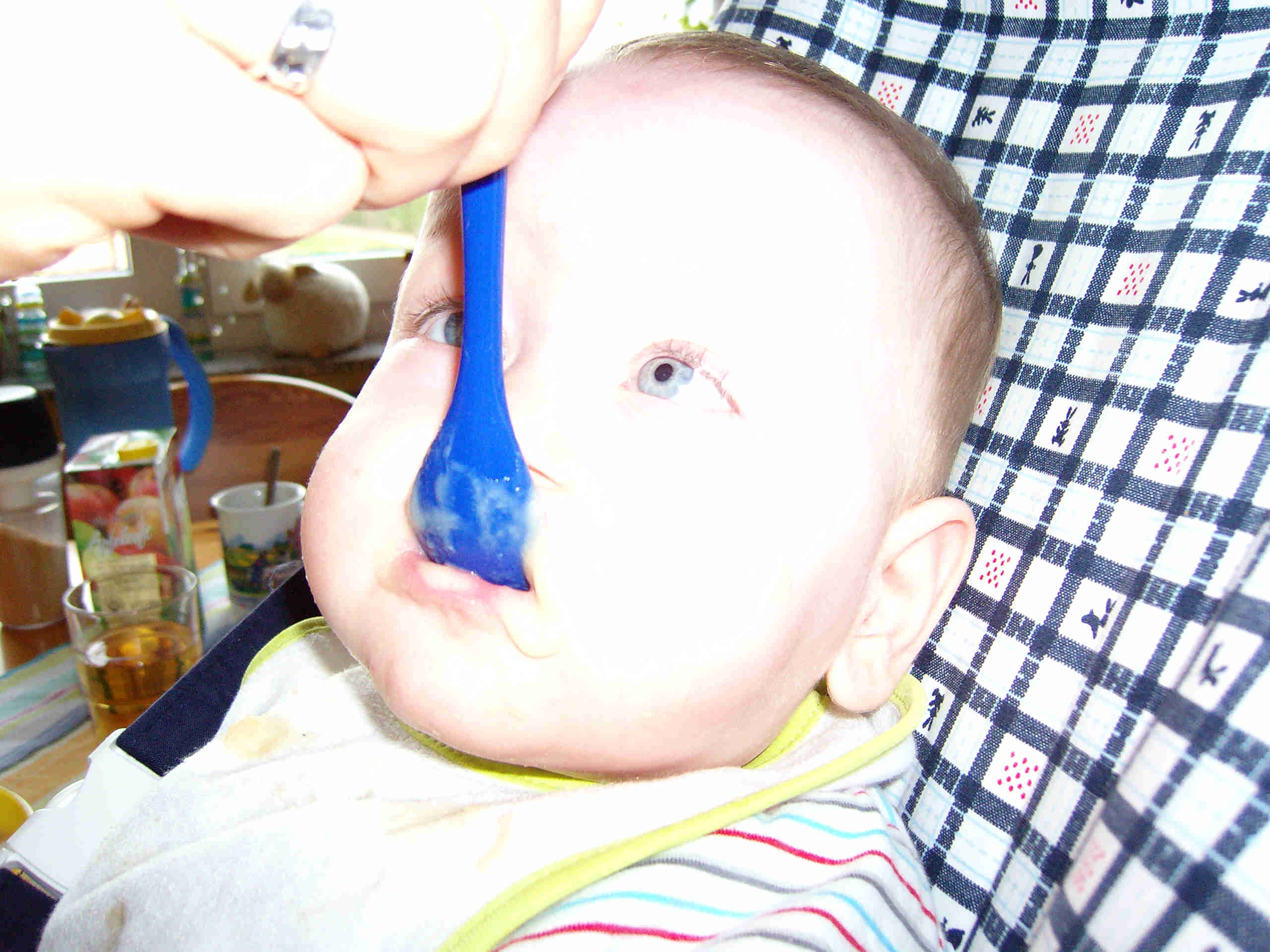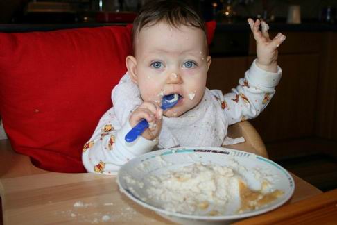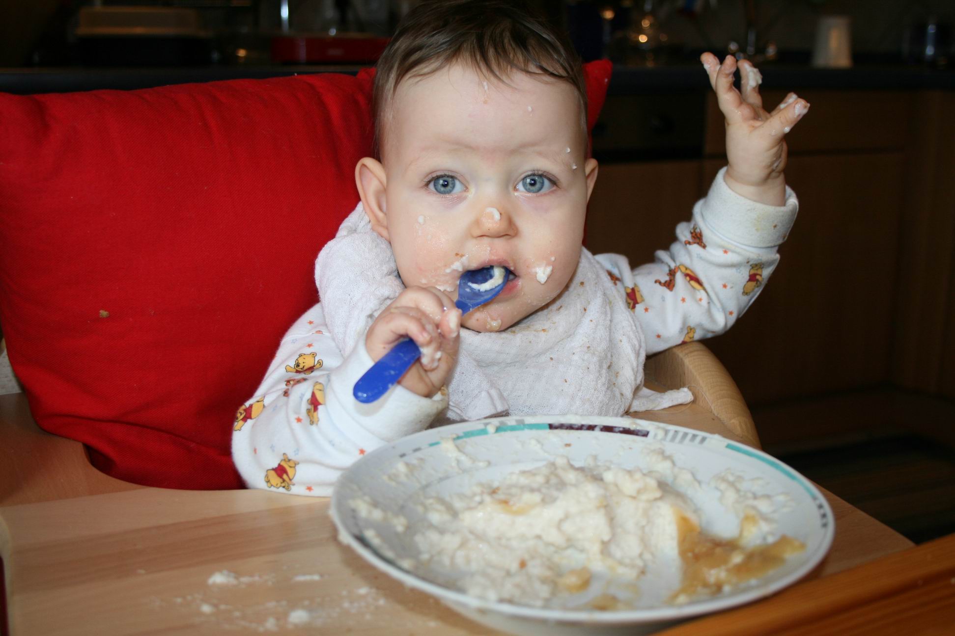 Beim Brei essen geht schon fast alles in den Mund, fast.