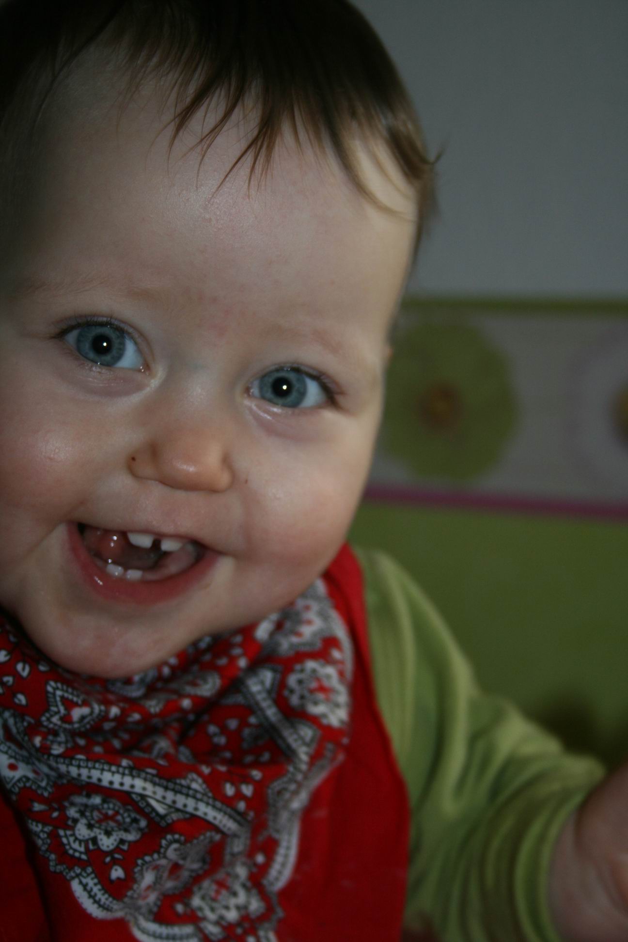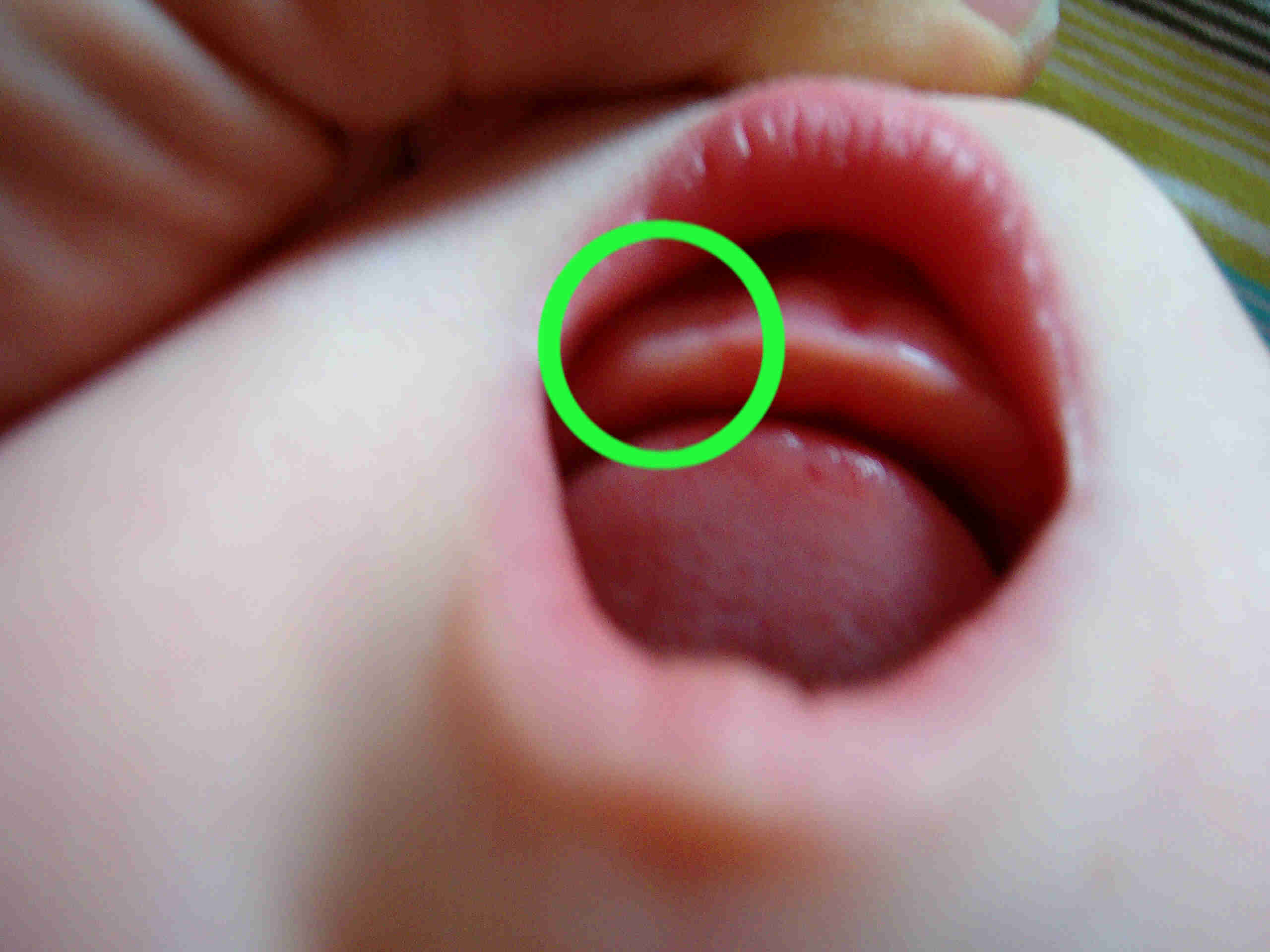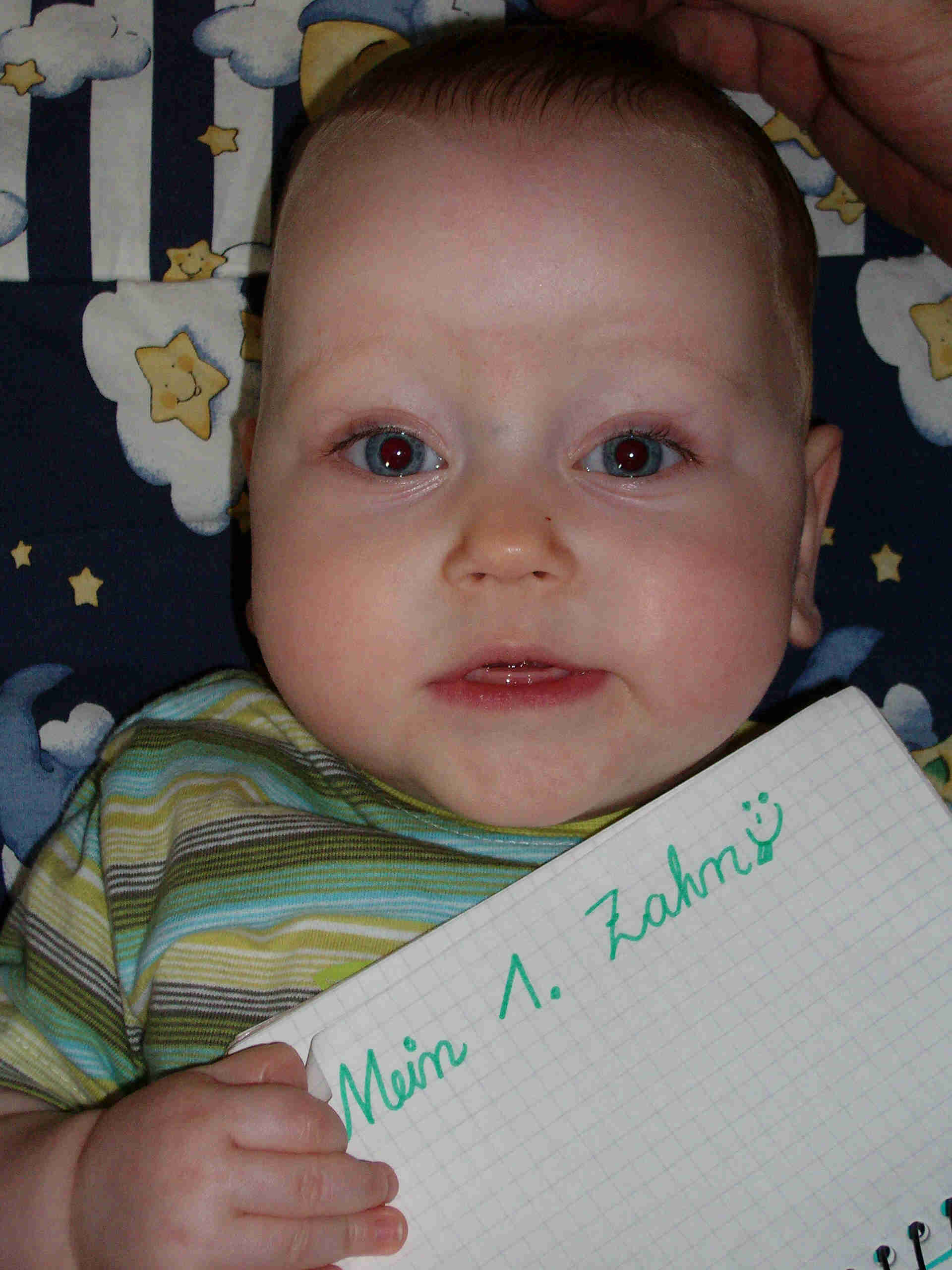 Das, was da in dem grünen Kreis weisslich schimmert, das ist mein erster Zahn
